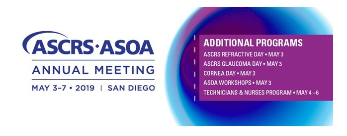 会议名称:2019年美国美国白内障和屈光外科学会年会(ASCRS·ASOA2019)